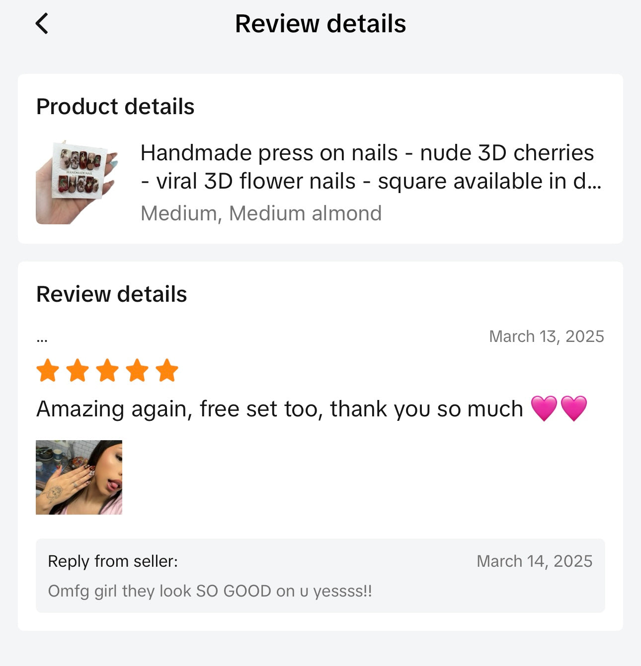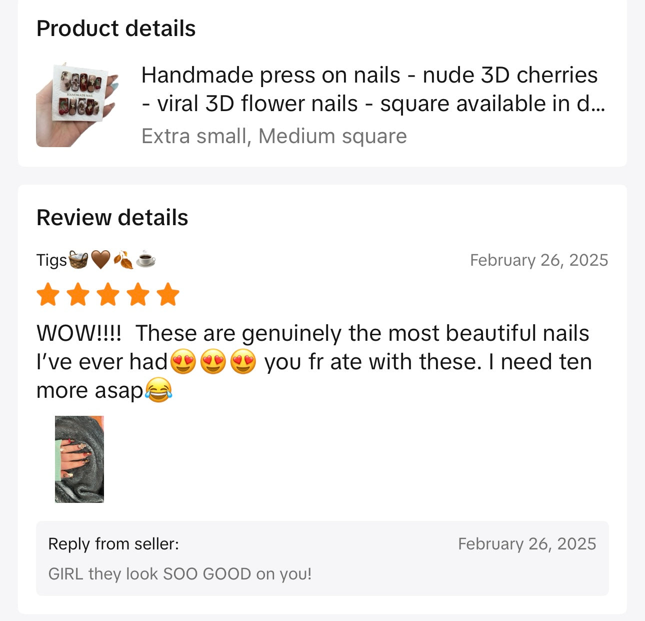 Handmade Press On Nails - Nude 3D Cherries & Viral 3D Flower